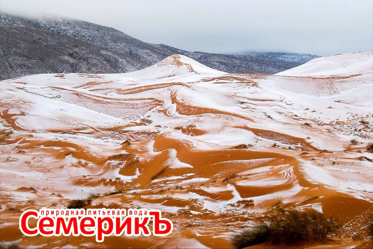 ☝️В 2016 году в пустыне Сахара выпал снег🤔. Это произошло на стыке пустыни🏜 и высоких холодных гор Атлас🗻.