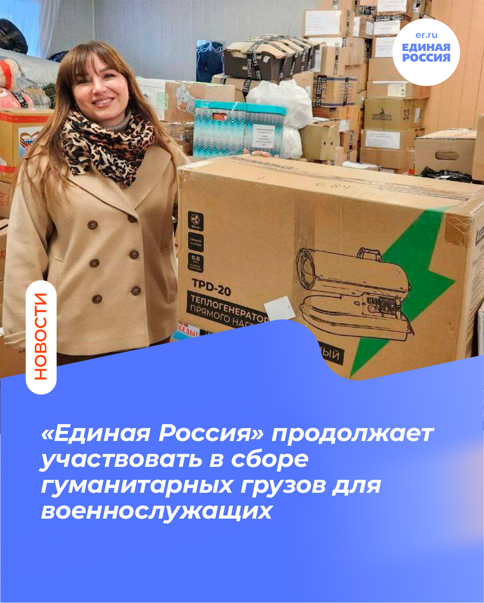 💬«Эдита Сукиасян постоянно участвует в формировании гуманитарных грузов для наших защитников. В этот раз она приобрела для отправки на фронт теплогенератор. Благодаря ее поддержке мы смогли отработать одну из поступивших заявок от наших земляков, находящихся на СВО.
