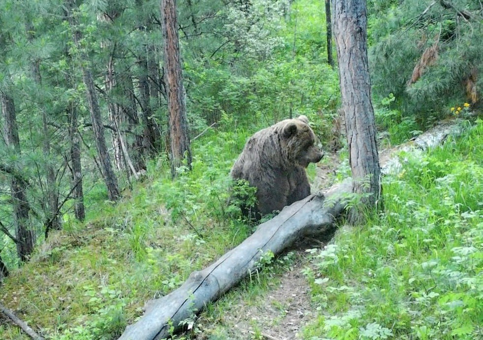 🧸 Задумчивый медведь попал в объектив фотоловушки в Алтайском заповеднике.