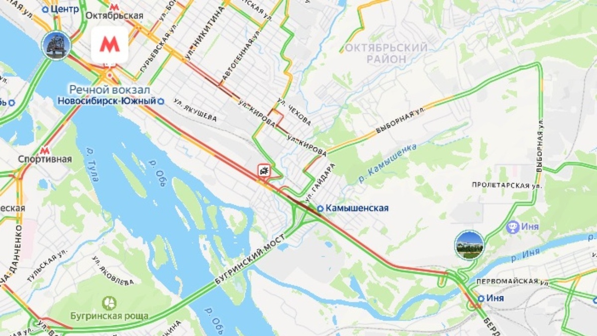 Утром 24 декабря проезд затруднён от Metro до станции метро «Речной вокзал». По данным сервиса Яндекс Пробки, вереница автомобилей растянулась на 7,7 км. Сервис оценивает пробки на дорогах областной столицы сегодня утром в 7 баллов. Заторы также образовались на улицах Кирова, Никитина, Бориса Богаткова, Немировича-Данченко, Фрунзе, Ватутина, на Октябрьском мосту и на других автомагистралях города.