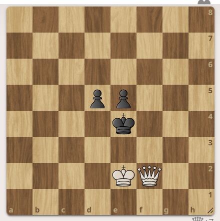 Чёрный король впереди двух пешек.