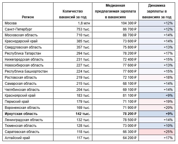 Иркутская область вошла в топ-20 регионов России по числу открытых вакансий в 2025 году