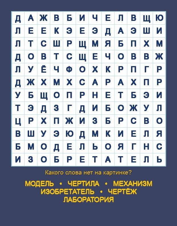 : 💡 Эврика! Я ваш изобретатель в лаборатории "Найди слова"! Поле 12 на 12 — наш чертежный стол, а слова — детали механизма! Собирайте их во всех направлениях — диагонали создают инновации! Я уже надел халат и готов экспериментировать! Каждая найденная деталь — шаг к вашему изобретению! Что создадите сегодня — вечный двигатель или машину времени?