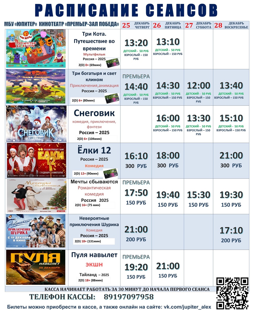 Расписание прокатной недели с 25 по 28 декабря 2025 года!