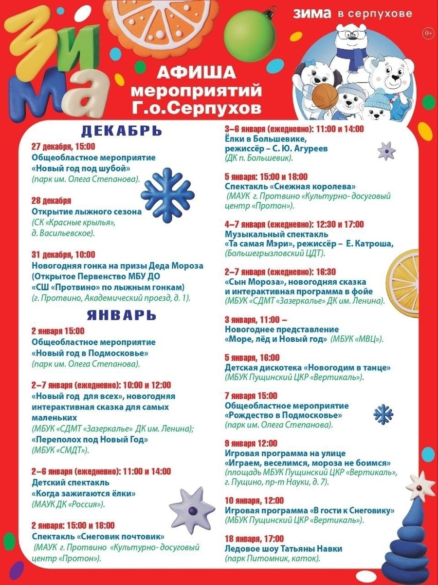 🎄Для жителей и гостей городского округа Серпухов подготовили насыщенную программу новогодних праздников.