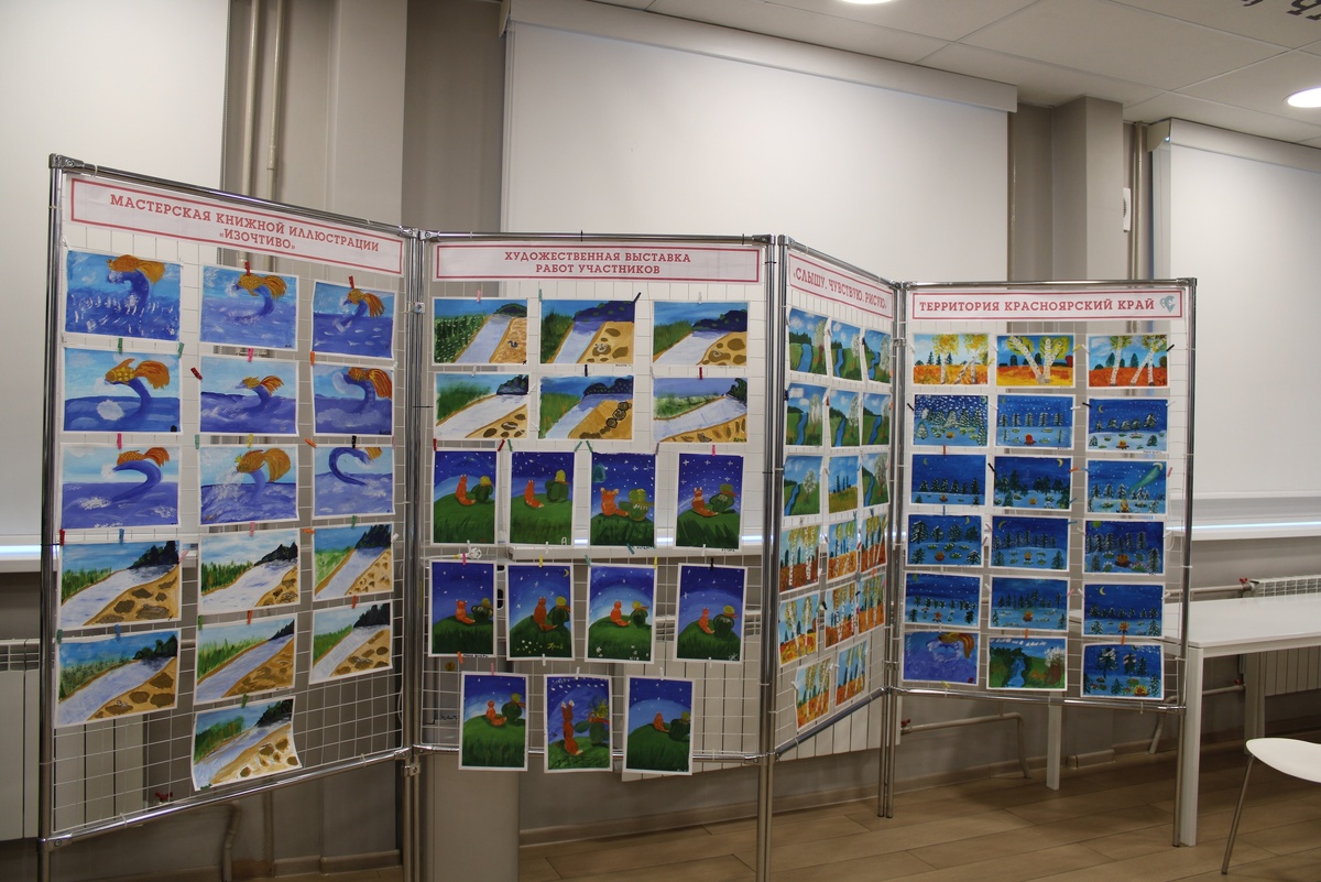 С 9 по 28 декабря в Городской библиотеке им. В. М. Шукшина действует уникальная выставки книжной иллюстрации «Слышу. Чувствую. Рисую», на которой представлены работы, выполненные в технике правополушарного рисования молодыми людьми с особенностями здоровья — участниками мастерской «ИЗОчтиВО».