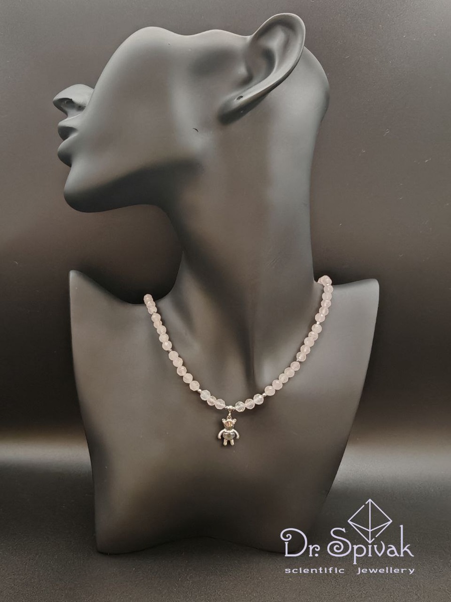 Чокер «Teddy Love» из розового кварца с милым кулоном-медвежонком