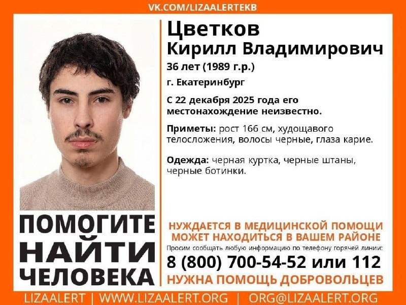 Пропал 22 декабря. Речь про Кирилла, у него есть особенности по здоровью — сам дорогу домой найти не может. «ЛизаАлерт» просит всех подключиться, особенно Железнодорожный район. Если заходите в подъезд, магазин, лифт, мусорку, теплушку — гляньте по сторонам. Он может быть совсем рядом и просто мёрзнуть. Проверьте дома и дворы на улицах: Соликамская, Строителей, Маневровая, Ватутина, Техническая, Минометчиков, пр-т Седова, Надеждинская, Билимбаевская, Кишенёвская, Дружининская, Кунарская, Коммунальная, Расточная, Покровская, пер. Клубный, Таёжная, Таватуйская, Сортировочная. Возможно, он сейчас сидит в вашем подъезде или магазине, просто прячется от холода. Его очень ждут дома. Если видели Кирилла или знаете, где он может быть — сразу звоните: 📞 8-800-700-54-52 (бесплатно, «ЛизаАлерт») 🔥 Подписывайся и смотри за ЕКБ и всем Уралом!