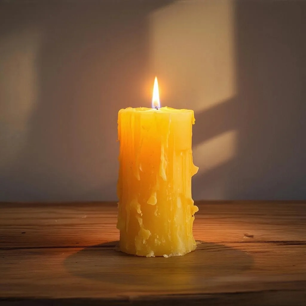 Тёмная комната, освещённая только свечами. В центре стола — большая зажжённая свеча, от которой горят ещё несколько тонких. Рука матери мягко придерживает одну из дочерних свечей. Лица детей отражаются в свете — уже без спора, с тихим удивлением.