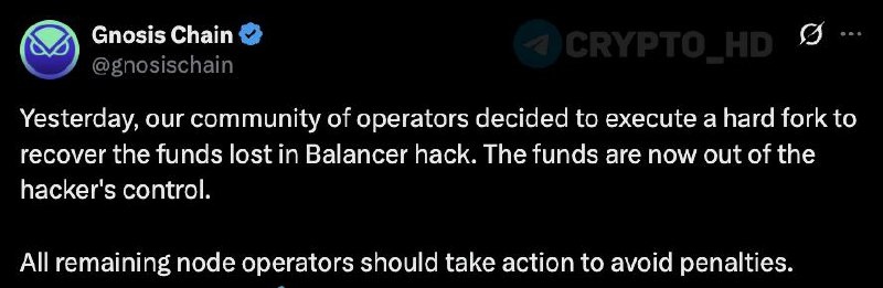 ⏳ Команда Gnosis Chain провела хардфорк для восстановления средств, утраченных в результате взлома Balancer на $128m.