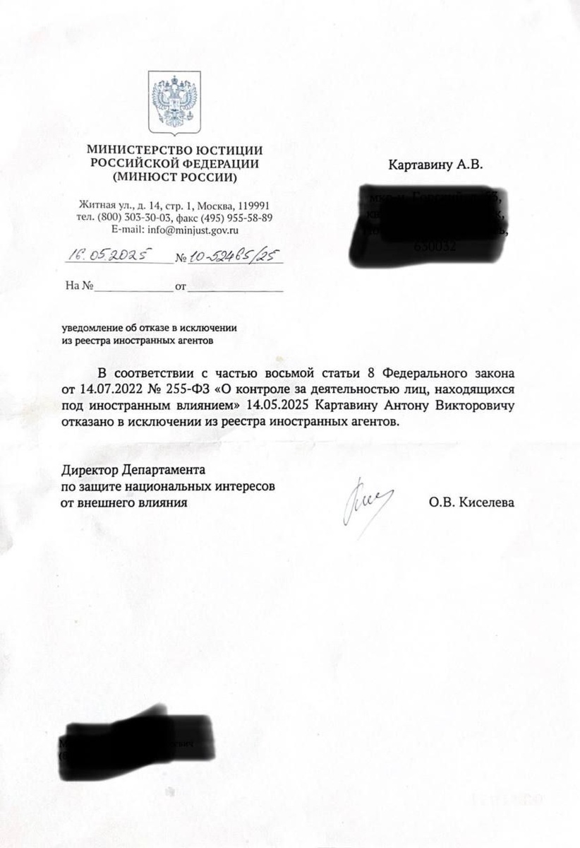 18+ НАСТОЯЩИЙ МАТЕРИАЛ (ИНФОРМАЦИЯ) ПРОИЗВЕДЁН, РАСПРОСТРАНЕН И (ИЛИ) НАПРАВЛЕН ИНОСТРАННЫМ АГЕНТОМ КАВЕРЗИНОЙ СВЕТЛАНОЙ ВИКТОРОВНОЙ ЛИБО КАСАЕТСЯ ДЕЯТЕЛЬНОСТИ ИНОСТРАННОГО АГЕНТА КАВЕРЗИНОЙ СВЕТЛАНЫ ВИКТОРОВНЫ* * номер в списке Минюста 777 Суд 26.12 в 10:00 в Ленинском суде. А мне Минюст в принципе не отвечает - хотя я уже несколько запросов о снятии с меня статуса иноагента послала. Последний - в октябре, и тишина. До этого в июле и тоже тишина. Мне даже опереться не на что в оспаривании своего иноагентства Напомню, что статус (как я понимаю, по просьбе губернатора НСО Травникова и депутата Госдумы Савельева) мне выдали в марте 2024 года, как позже выяснилось за два репоста других иноагентов. Ни о каком "иностранном финансировании" речи, естественно, не шло