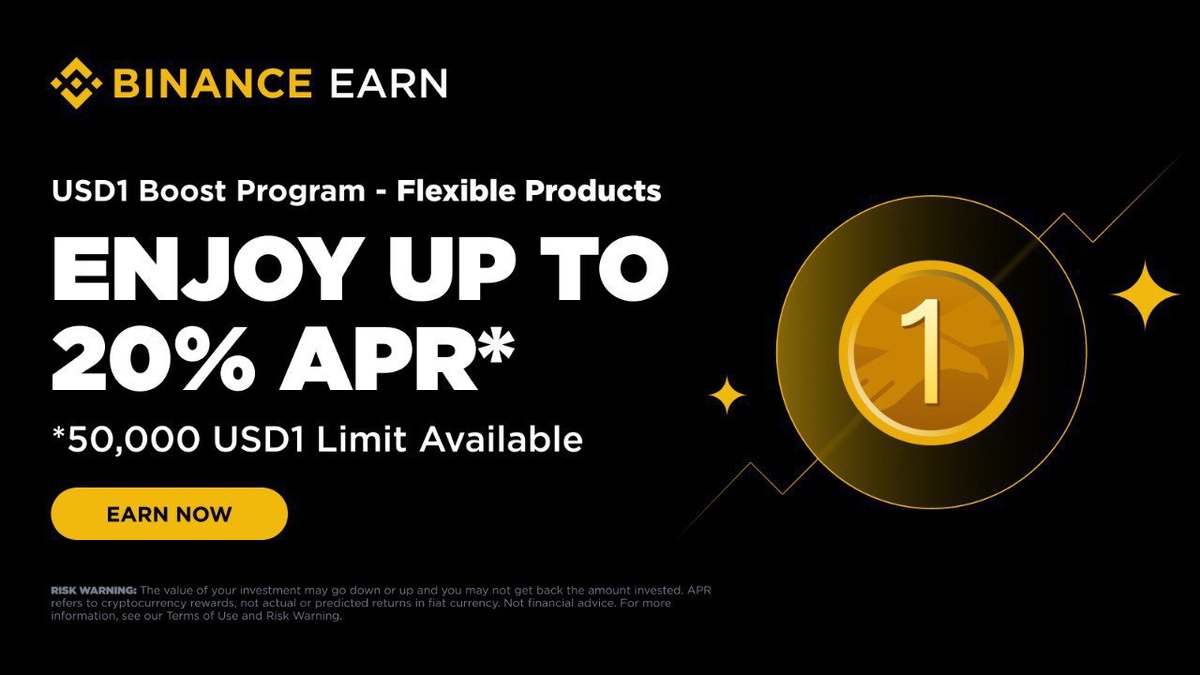 Binance Earn анонсировала стейкинг стейблкойна USD1 с доходностью в 20% APR до 50000$