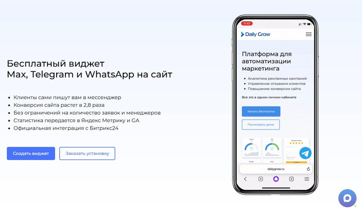 Добавили интеграцию с MAX в виджете для сайта DailyGrow