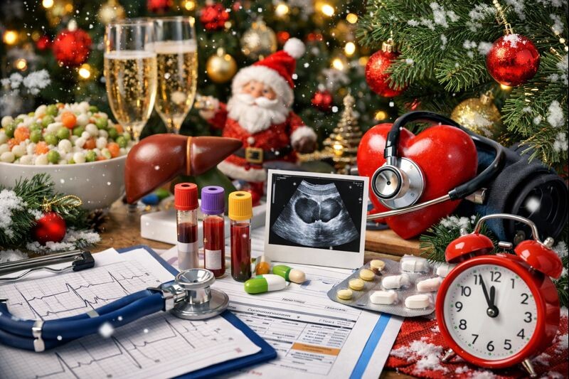 Особенно для тех, кто уверен: «Да я нормально переношу праздники». Спойлер: организм не всегда с вами согласен. Именно поэтому новогодний чек-ап — не проявление тревожности, а разумная профилактика. Тем более что современное комплексное обследование организма занимает минимум времени и даёт максимум пользы. Разберёмся с юмором, но по-медицински честно, что стоит проверить перед праздниками, чтобы встретить Новый год спокойно — и без знакомства с дежурным врачом. 🥂 Печень — держим в курсе планов Если бы печень могла говорить, в декабре она бы спросила: