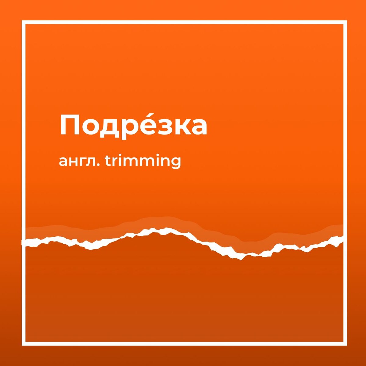 Подрезка — это удаление кромок бумаги или картона, оттисков или переплётных материалов для получения точных размеров и ровных краёв. Подрезку проводят на одноножевых бумагорезальных машинах с четырёх, а при хорошем качестве кромок — с двух сторон под прямым углом для создания двух взаимно перпендикулярных, «верных», сторон.