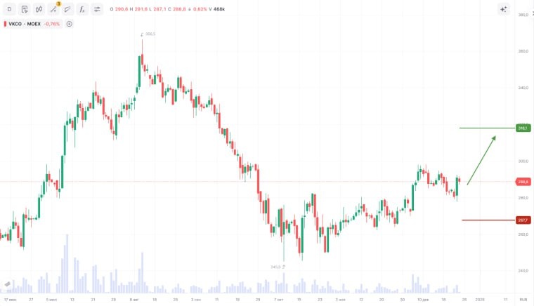 Β» Π’ΠΈΠΊΠ΅Ρ: #VKCO ΠΠ΄Π΅Ρ: Long β¬οΈ Π‘ΡΠΎΠΊ ΠΈΠ΄Π΅ΠΈ: 3-4 Π½Π΅Π΄Π΅Π»ΠΈ Π¦Π΅Π»Ρ: 318,10 ΡΡΠ±. ΠΠΎΡΠ΅Π½ΡΠΈΠ°Π» ΠΈΠ΄Π΅ΠΈ: 10,38% ΠΠ±ΡΠ΅ΠΌ Π²Ρ