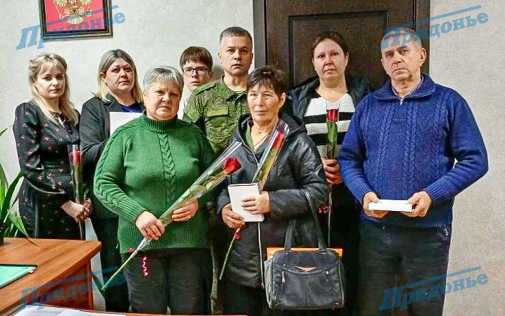 Ордена Мужества (посмертно) переданы Данилу Баранову – сыну Дениса Петровича Баранова, Юлии и Нине – сёстрам Александра Сергеевича Пащенко, Валентине Александровне – маме Сивоволова Дениса Валентиновича. Медаль Суворова (посмертно) будет бережно хранить Лидия Викторовна – мама Островского Алексея Николаевича.
