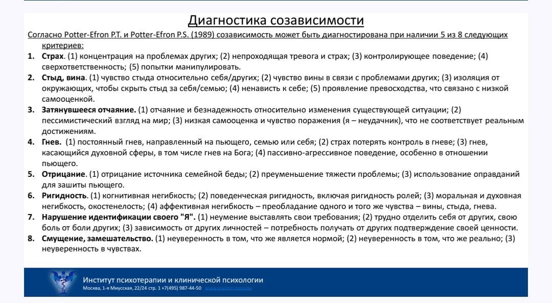 https://dzen.ru/media/nazarovaelenapsy/spasatelnica-i-ee-proekt-pochemu-nas-tianet-na-trudnyh-mujchin-6901adf783234556c8577754 https://dzen.ru/media/nazarovaelenapsy/on-izmenitsia-esli-izmenishsia-ty-69030008da80511c768e83d1 Созависимость — это не про алкоголь, а про спасательство. И я сейчас объясню, почему. На лекции по теме аддикций разбирали разные кейсы. Кстати, говоря о зависимостях, всегда в связке идет тема созависимости — если первый не одинок и рядом есть близкие, казалось бы, здоровые люди. Хочу поделиться одним из кейсов с вами. Женщина, у которой муж алкоголик умирает. Она повторно выходит замуж за непьющего, но уже спустя три года он начинает пить беспробудно. Она идет к психологу. Конечно, здесь проблема не в муже, а в ее желании спасать, помогать, быть значимой и чувствовать свою нужность через слабость других... И вот к чему я пришла, разбирая это. Созависимость — это не лотерея "повезет/не повезет с человеком". Это внутренняя программа. Которая ищет не партнера,