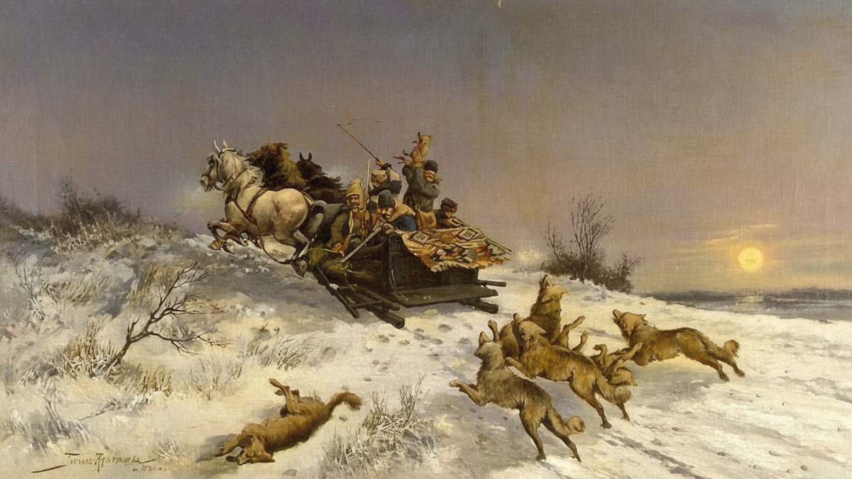 Представьте себе картину. Затерянная в снегах дорога, сани, запряжённые тройкой лошадей, мчатся сквозь ночь. Внутри едут крестьяне, возвращающиеся с ярмарки, или купец, спешащий по делам. И вдруг, из темноты, как из ниоткуда, появляются они – волки. Их глаза горят в свете луны, как угольки, а голодный вой вселяет ужас в сердца путников. Поэтому ехать зимой одному по степи приравнивалось к самоубийству.