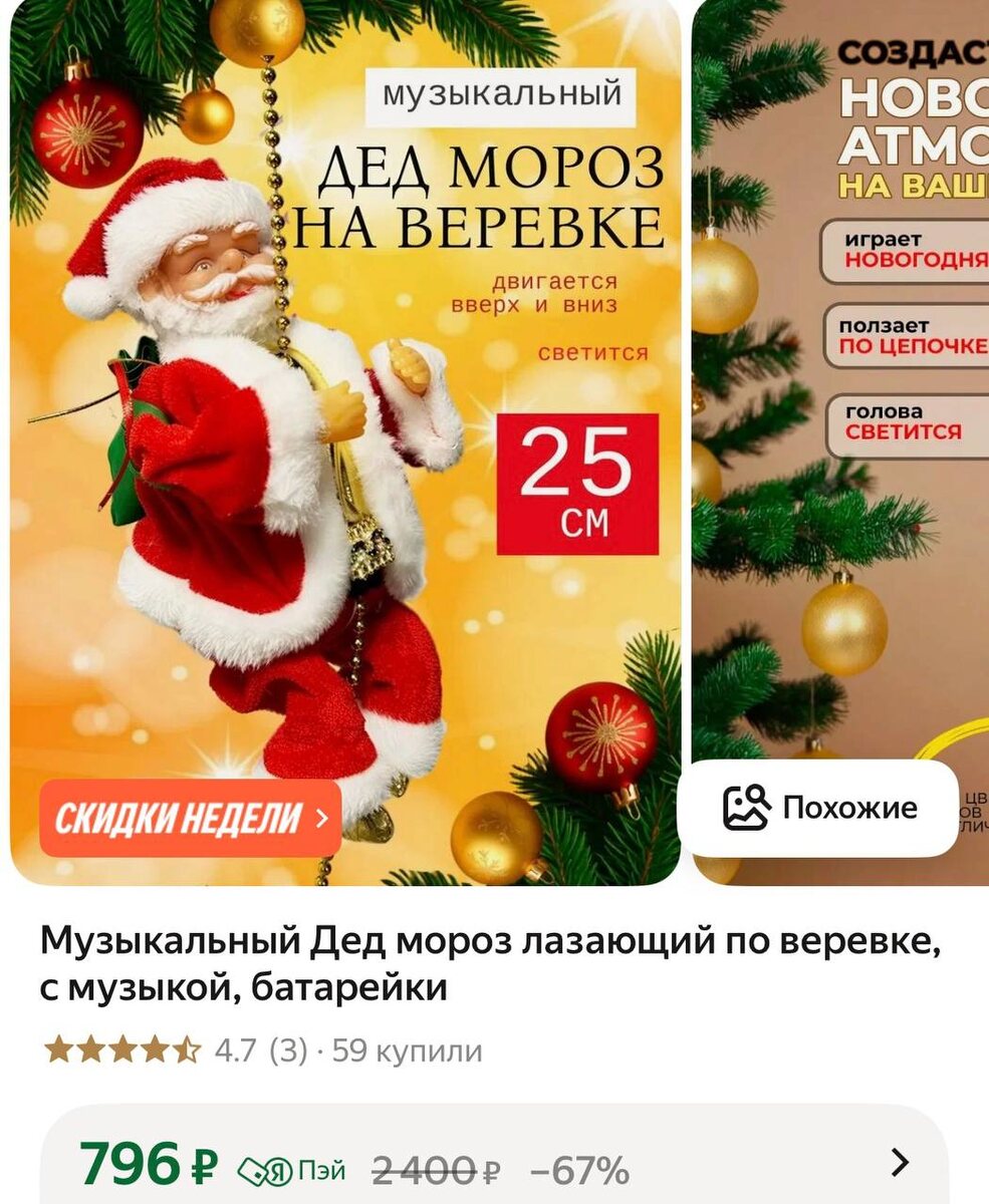Музыкальный Дед мороз лазающий по веревке, с музыкой, батарейки