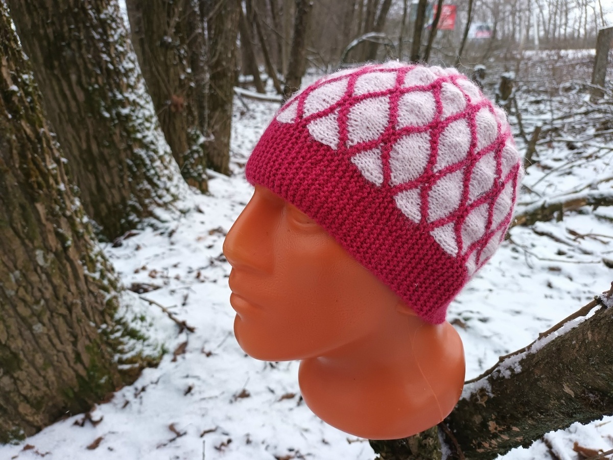 Закрываю проект шапкой собственного сочинения. Шапка вариативная по всем параметрам: количество цветов, высота и узор ячеек. А поскольку самая первая версия была очень многоцветной, шапка получила название Арлекин. А проект на этом закрывается, но шапки с вами не прощаются. Описание любой из них можно будет получить за 500 руб. Пока в ручном режиме, попозже автоматизирую