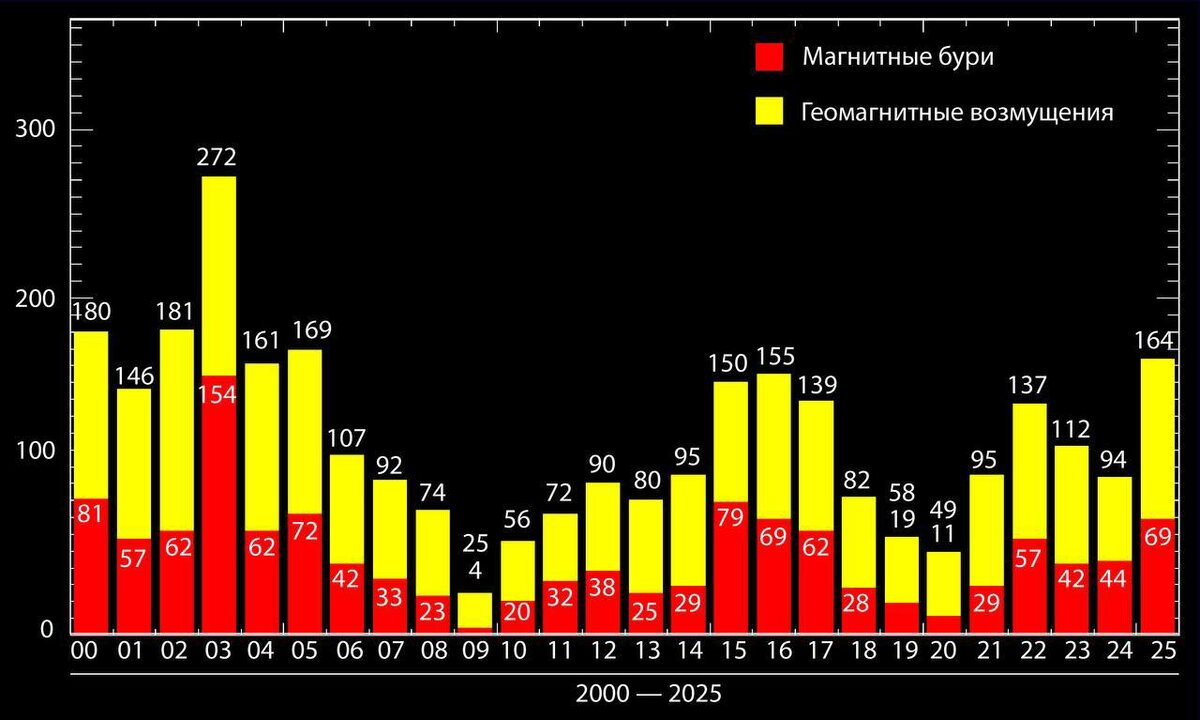 Этот год оказался самым «штормовым» за последнее десятилетие. По данным ученых, магнитные бури в 2025-м фиксировали 69 раз – для сравнения, годом ранее их было всего 44. 📊 Что ещё интересного: – дней с геомагнитными возмущениями – 164 (против 94 в прошлом году); – такого количества всплесков не было с 2016 года; – активность Солнца всё ещё высокая – крупная корональная дыра продолжает влиять на Землю. 😵💫Головные боли, усталость, скачки давления – всё это могло быть не просто «на погоду». 💫Берегите себя и не удивляйтесь, если организм иногда «глючит» – космос в этом году особенно активен.