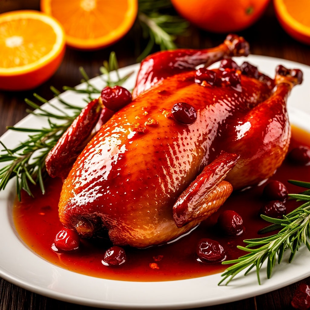 Утка в апельсиново-клюквенном соусе — популярное блюдо на новогодние праздники. Аппетитная хрустящая корочка, ягодно-цитрусовый аромат и нежное сочное мясо делают ее настоящим украшением стола, а кисло–сладкий соус станет ярким акцентом во вкусе. Давайте приготовим это блюдо на наш новогодний стол. Ингредиенты: Утка — 1 шт. (~2,5 кг.) Розмарин — 3 веточки Чеснок — 3 зубчика Соль, молотый черный перец — по вкусу Клюква — 200 гр. Апельсин — 3 шт. Мед — 2 ст.л. Крахмал — 2 ч.л. Соль, перец — по вкусу Приготовление: Это блюдо станет главным украшением вашего новогоднего стола и порадует гостей своим вкусом и ароматом!