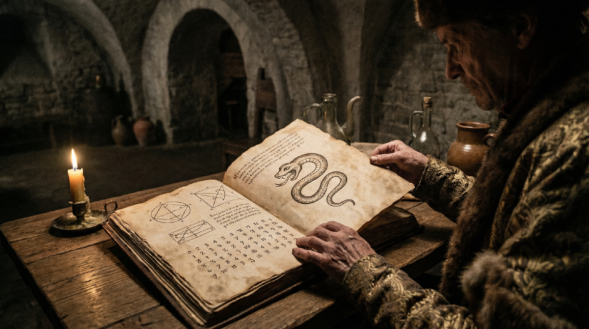 Тусклый свет свечи в сыром подвале московских палат конца XV века. За дубовым столом сидит человек в дорогом кафтане. Его руки дрожат, когда он переворачивает пожелтевшие страницы. На пергаменте — не лики святых и не молитвы. Там чертятся странные круги, бегут столбцы цифр, а в центре сложной схемы скалит пасть Змей.