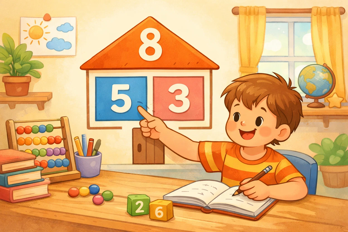 Многие родители сталкиваются с одной и той же ситуацией. Ребёнок вроде бы умеет считать, знает цифры и числа, но как только дело доходит до сложения и вычитания в пределах 10, начинаются сложности. Примеры решаются медленно, ответы подбираются наугад, уверенности в своих действиях нет. Часто проблема не в лени и не в том, что ребёнку «рано» или «сложно». В большинстве случаев причина в другом — ребёнок не понимает состав числа, а без этого навыка математика в начальной школе даётся тяжело. Состав числа — это понимание того, из каких частей складывается одно целое. Например, число 6 можно разложить так: 1 и 5, 2 и 4, 3 и 3. Именно с этого начинается обучение математике для дошкольников и первоклассников. Если навык состава числа не сформирован, ребёнку сложно: Когда же состав числа понятен, математика становится логичной, а не набором непонятных правил. Ребёнок начинает видеть связи между числами и увереннее работать с примерами. Один из самых понятных способов объяснить состав числа