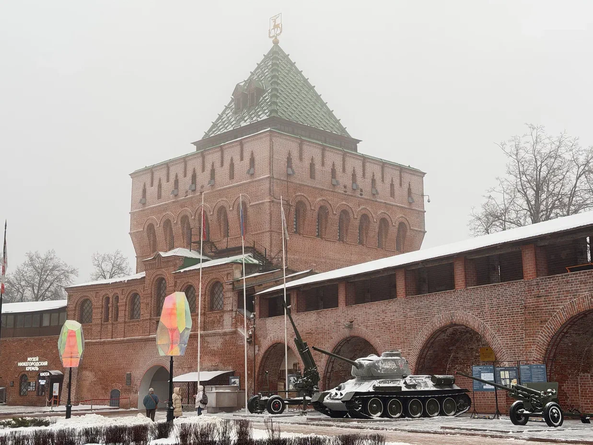 Следующий пункт – Нижегородский кремль. Крепость расположена на возвышенности на левом берегу Волги. Стены и башни кремля выполняли оборонительную функцию с начала XVI века.