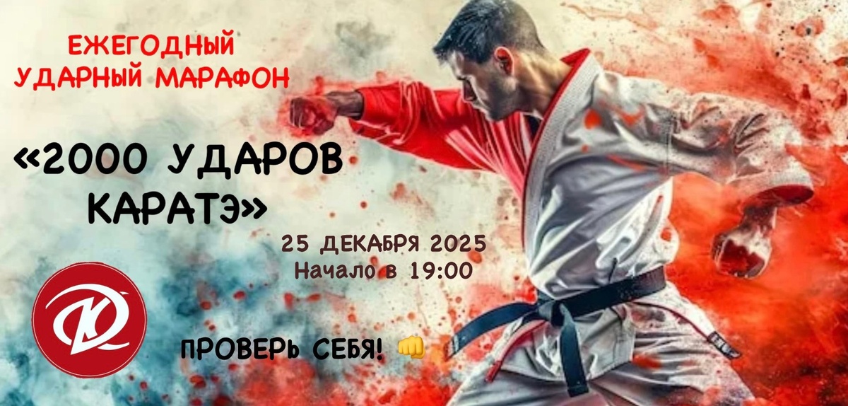 ! Уже в этот четверг, 25 декабря, мы провожаем уходящий 2025 год нашей ежегодной акцией- «2000 ударов каратэ» 👊 Наш ударный марафон пройдет в нашем тренировочном зале в СШОР «Москвич» Начало в 19:00. При себе иметь- кимоно, пояс и накладки 🥋🎗️🥊 • 14-ый год подряд мы не изменяем своим традициям! 🙏 - Приходи и проверь себя 🫵 P.S. По окончании- чаепитие! Новогодние колпаки приветствуются! 🎅🏻
