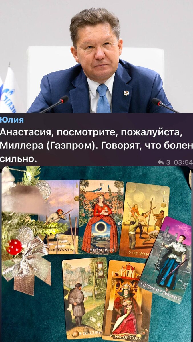 Что с ним, как здоровье? Напряженно (7 жезлов), борется иначе говоря. Проблема наследственная или возрастная (Императрица), но однозначно серьезная и не вчера возникла, так как старшие арканы — это вам не шуточки. Еще и по символике нижняя часть тела под прицелом. В общем, сражается Алексей, по врачам ходит (5 жезлов, Королева мечей), а в основе расклада образ жизни слишком расслабленный, резко как-то его накрыло по здоровье (Король кубков, 5 кубков), неожиданно. В прогнозе — лечение, пока критичного нет.