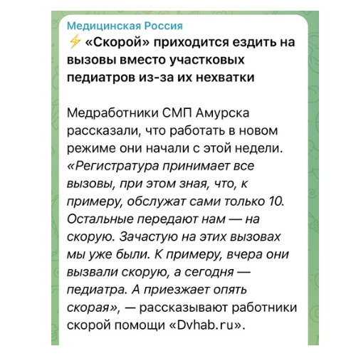 То же самое происходит с участковыми педиатрами. 1–2 вызова на участок. Начальство пытается оптимизировать работу и на какие-то дни снимает педиатров, а те полтора вызова, которые поступают, отдают бригадам скорой.