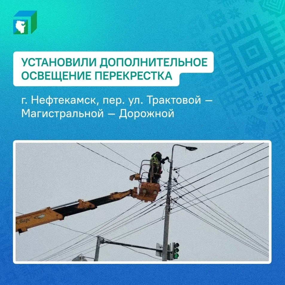 В Нефтекамске на пересечении улиц Трактовой – Магистральной – Дорожной установили дополнительный светильник