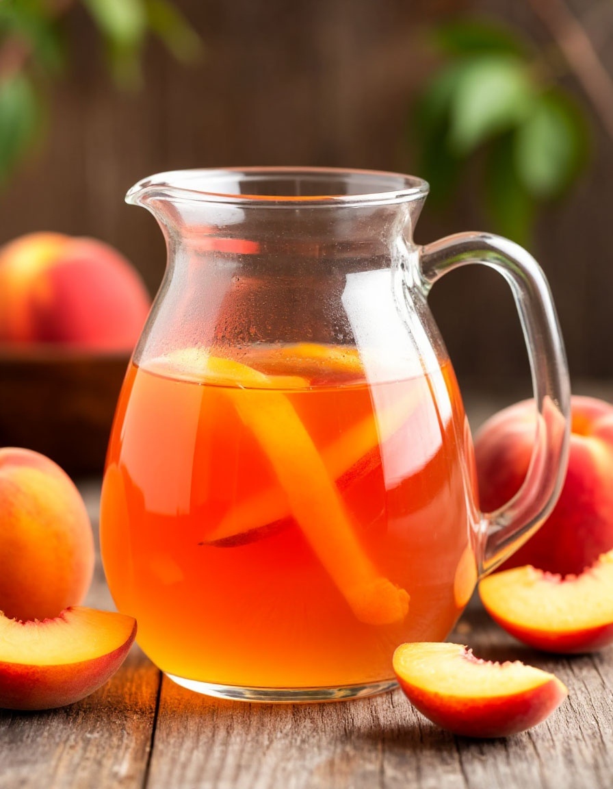 4. Хранить в холодильнике. Для подачи использовать кувшин. Смешивать чай с персиковым сиропом.