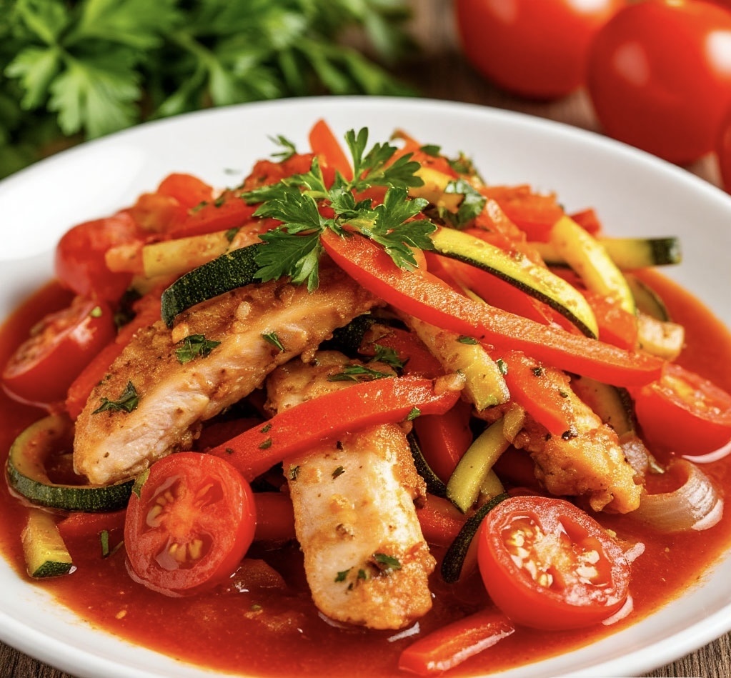 Когда нет времени на долгие кулинарные эксперименты, а хочется сытного и полезного ужина, выручит этот простой рецепт. Сочное куриное филе в ароматной подливе с сезонными овощами готовится всего за полчаса. Блюдо получается сбалансированным: белок, клетчатка и минимум лишних калорий. Время приготовления: 30 минут