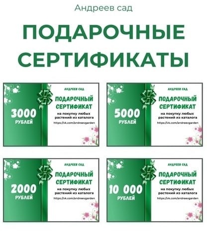 ❗️❗️❗️❗️ УСТАЛИБЕГАТЬ В ПОИСКАХ ПОДАРКОВ?🌲 Остановитесь! Отдышитесь 😉 Я знаю, как вас выручить! Мои подарочные сертификаты порадуют ваших цветоводов! Предлагаю сертификаты на сумму 2000, 3000, 5000 и 10 000 рублей. *Можно сделать индивидуальную сумму. А вы уже всем купили подарки? 📦 Доставка: Почта/СДЭК по всей РФ и СНГ 💜 я в MAX: +79036624141 ПРИВЕТ,АНДРЕЙ 💚СПАСИБО 🤝ОТЗЫВЫ 🍃ПРИМЕРЫ САЖЕНЦЕВ