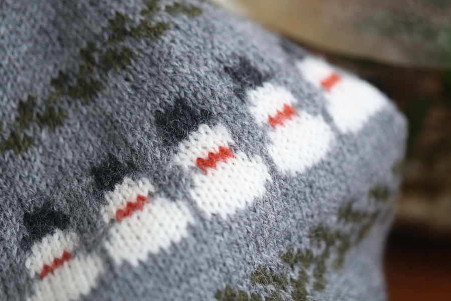 Этот светлый свитер я сейчас довязываю, хочется скорей уже носить, потому что хоть пряжа и такая же, как у серого, но она заметно нежнее. Ещё надо скорей приниматься за новогодний подарочный зелёный свитер, который, похоже всяко не успею, но хотя бы будет, что предъявить в доказательство подарка:))) Фото зелёного свитера не будет, сегодня всё про снеговиков: