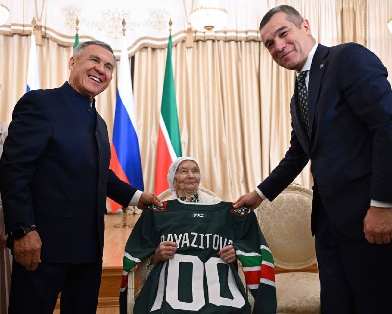 »? Накануне Хубайба Баязитова отметила вековой юбилей! Наш Раис наградил ее медалью «100 лет образования ТАССР». А директор клуба «Ак Барс» Мансур Усманов подарил женщине фирменное джерси с номером 100. Давайте поздравим нашу землячку и пожелаем крепкого здоровья!👍 Абау Мы в MAX