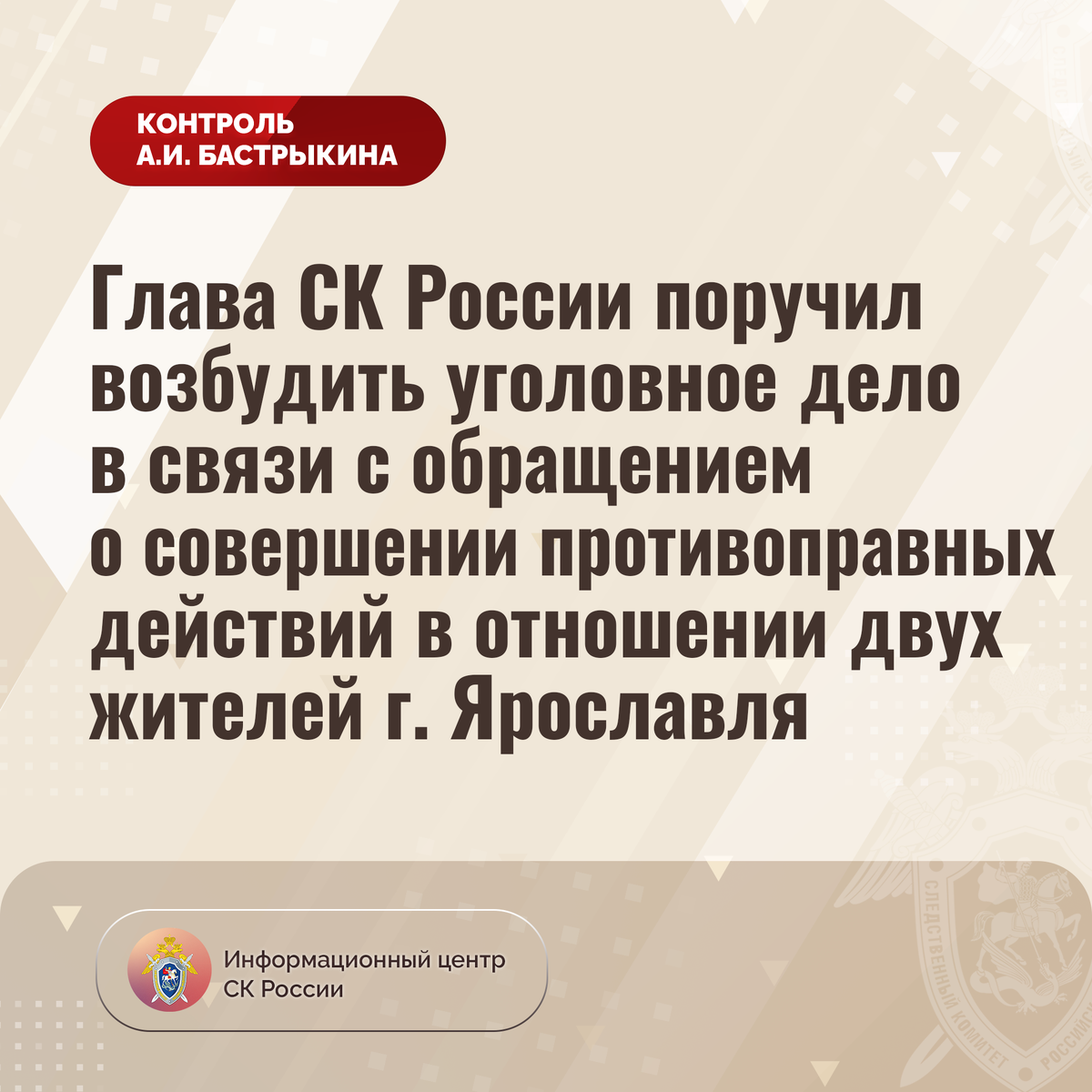Глава СК России поручил возбудить уголовное дело в связи с обращением о совершении противоправных действий в отношении двух жителей