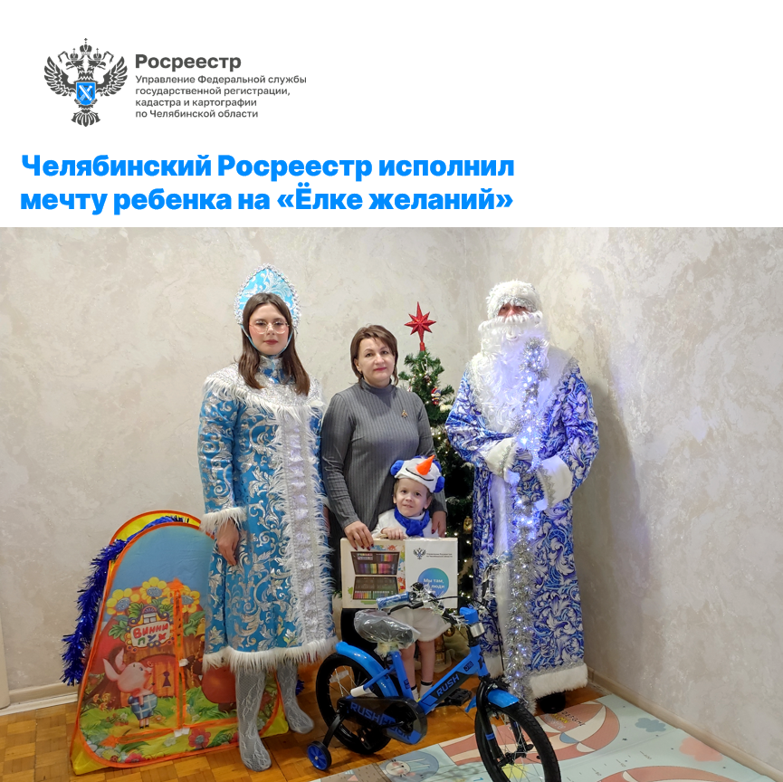 В 2025 году Управление Росреестра по Челябинской области вновь приняло участие в «Ёлке желаний». Ежегодная благотворительная акция помогает исполнить новогодние мечты детей, оказавшихся в трудной ситуации, сирот, детей с ограниченными возможностями, особенностями здоровья и физического развития, а также одаренных ребят.