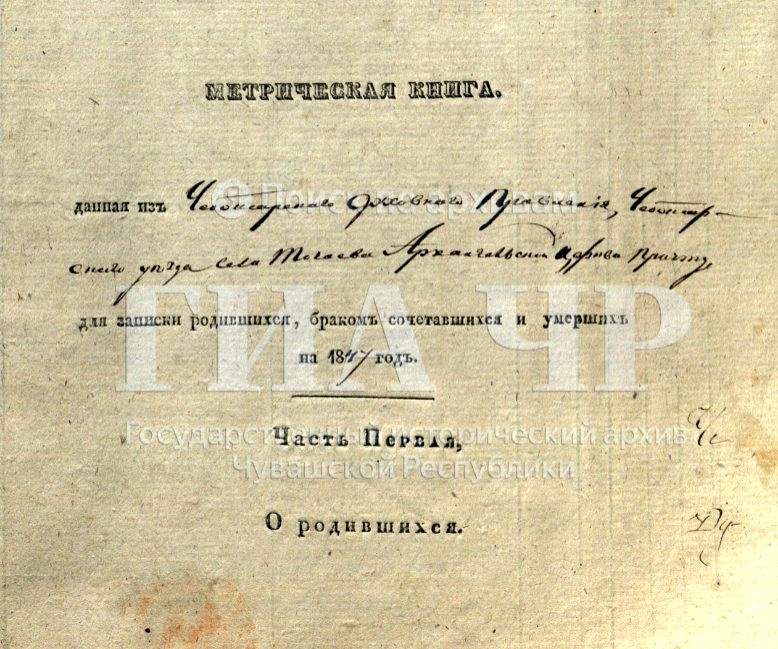 1847 год. Село Тогаево. Чебоксарский уезд. Оточев Григорий Андреевич.