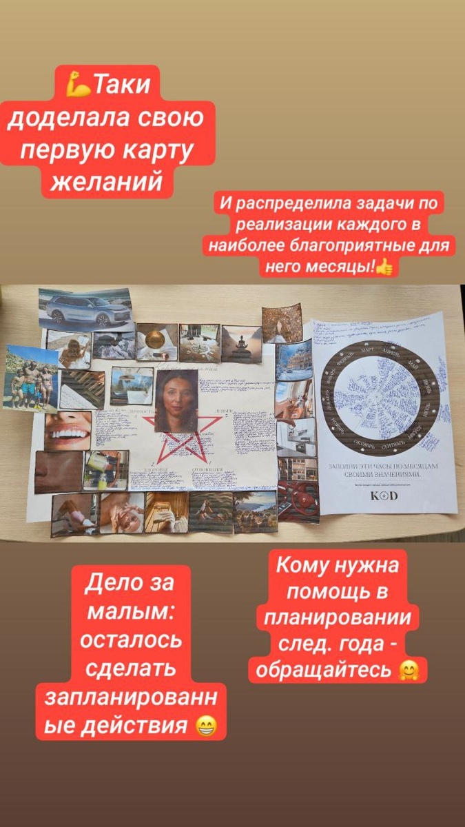 Доделала свою первую карту желаний и распределила план их реализации в наиболее благоприятные для каждой задачи месяцы