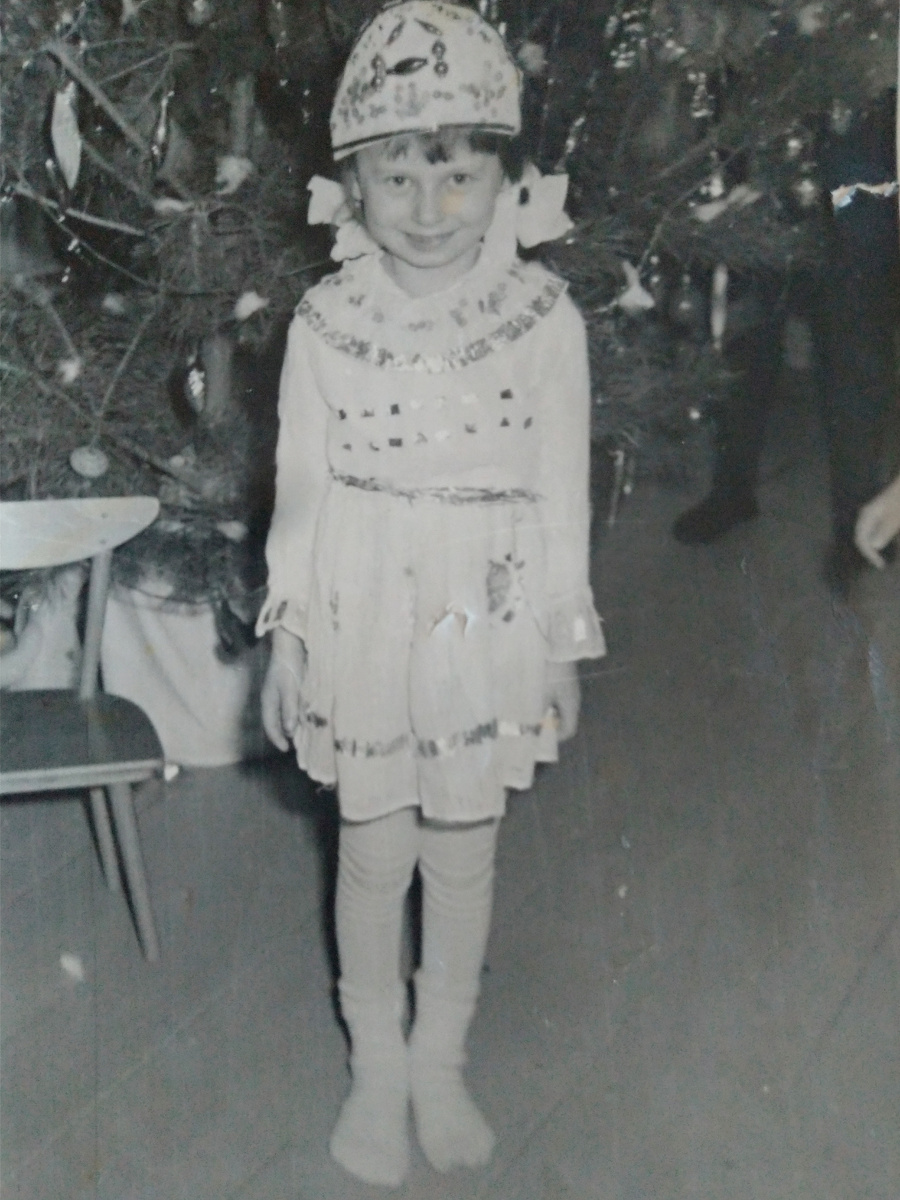 В детстве Новый год был самым любимым праздником. Ставили живую елку, от которой пахло смолой. Наряжали ее игрушками и блестящим дождиком. А еще готовили маскарадные костюмы. В детском саду я была Снежинкой. Помню, как помогала маме бить стеклянные советские елочные игрушки на осколки, которыми обклеивали марлевое платье и корону, основой которой был картон.