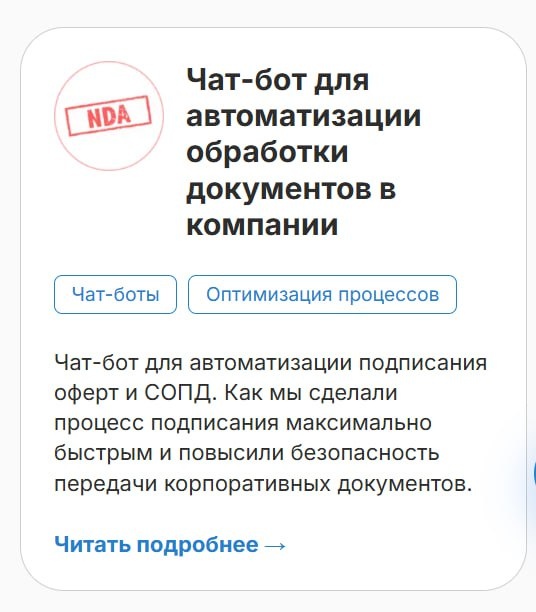 Выложили подробный кейс на сайте, будет интересно заглянуть. Для одного из клиентов мы собрали Telegram‑бота. Он авторизует клиента, дает доступ к оферте и доводит до клика «Подписать» прямо в мессенджере. Все это занимает пару действий и меньше минуты. Пользователь заходит по номеру телефона, система сверяет его с базой и открывает документы. Бот присылает ссылку и кнопку «Подписать», фиксирует результат. Если клиент затянул с решением, мягко напоминает через час. В день система стабильно обрабатывает до 1 500 заявок. Все данные идут по защищенным каналам. Для команды это меньше ошибок из‑за человеческого фактора и понятная статистика по подписям. Для клиентов — привычный Telegram вместо кабинетов. Полный разбор — в кейсе на сайте. Нужно сократить путь до двух кликов? Обсудим, как адаптировать такой бот под ваши процессы. Ссылка на кейс: https://botcreators.ru/blog/kreditnye-zajavki/