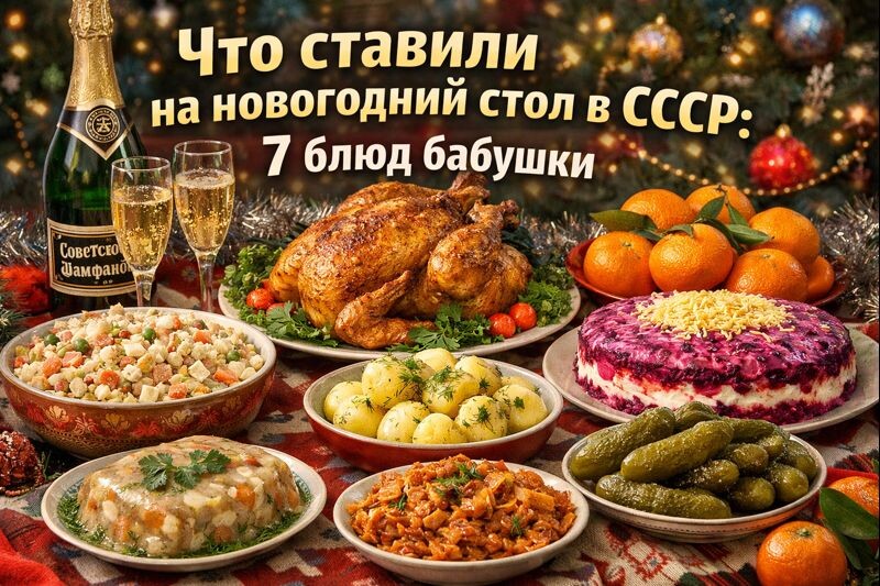 Пахнет хвоей, на экране мелькает "Ирония судьбы", а на кухне - священнодействие. Помните это чувство? Если нет, то вам точно рассказывали. Я села с чаем к бабушке, чтобы разузнать, а что же было на том самом, легендарном новогоднем столе из прошлой жизни СССР. Не изыски ресторанные, а та самая, душевная и обязательная "классика жанра". Достала её потрёпанный альбом, и поплыли воспоминания... Оказалось, всё было чётко, по протоколу! И этот протокол знала каждая хозяйка. Бабушка, поправляя очки, уверенно заявила: "Меню было почти как указ. Отступать нельзя - гости не поймут и обидишь домового". Вот те самые 7 столпов советского Нового года. "А что пили?" - спрашиваю я. "Как что? "Советское шампанское", полусладкое!" - хохочет бабушка. Пробка в потолок, лёгкая "игристость", которую многие дети пробовали тайком. И, конечно, марроканские мандарины в сетчатом мешочке. Их цитрусовый, чуть пыльный запах - главный парфюм Нового года. Они лежали в вазочке как символ дефицитного, но такого доступ