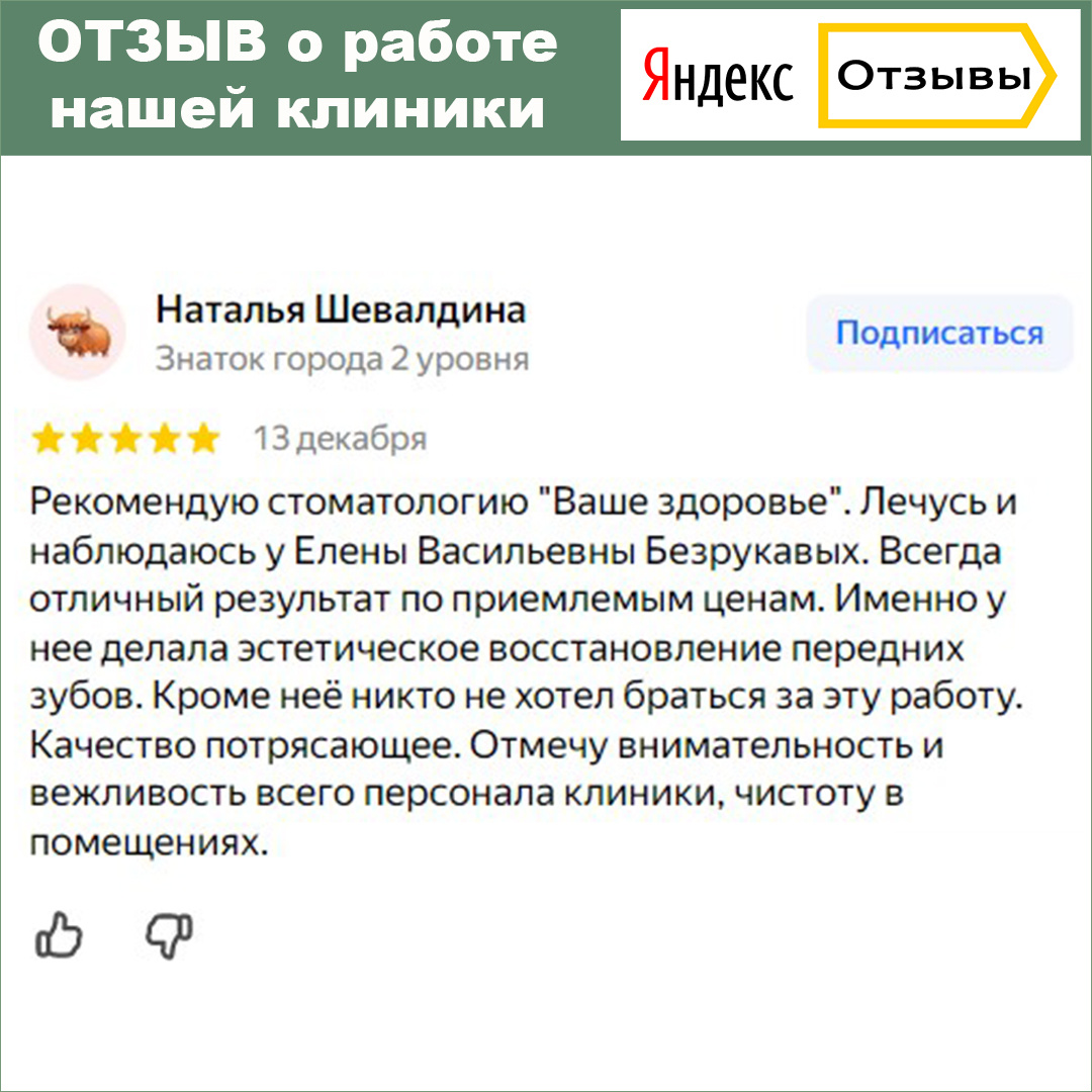 Новый отзыв о работе МЦ "Ваше здоровье" на Яндекс.Картах