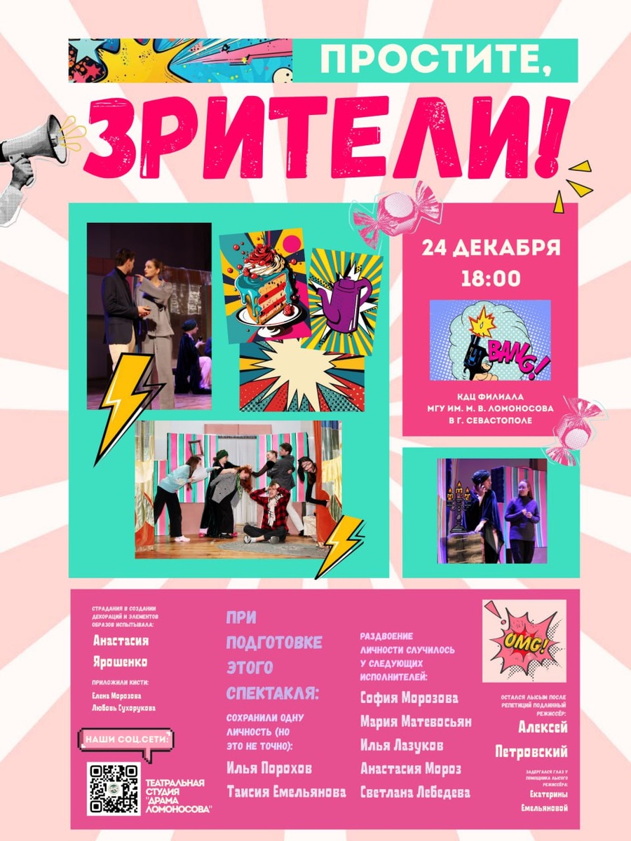! 🔈 Напоминаем, что сегодня в 18.00 в актовом зале КДЦ филиала состоится премьера спектакля «Простите, зрители!» ☀️ Не забудьте захватить с собой хорошее настроение и готовность поддержать наших юных актеров! До встречи в зрительном зале! #объявления_севмгу