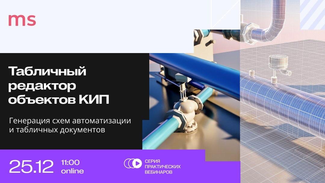 ! 📣 👉 «Возможности MS КИП в части работы с табличным представлением объектов КИП, а также генерации схем автоматизации и табличных документов» 🕚 Завтра, 25 декабря 2025 года | 11:00 (Мск) О чем поговорим на вебинаре: 1️⃣ Работа с исходными данными для проектирования систем автоматизации 2️⃣ Работа с данными в табличном редакторе объектов контрольно-измерительных приборов и автоматики 3️⃣ Генерация схемы автоматизации 4️⃣ Генерация таблицы технических средств автоматизации, опросных листов Чем будет полезен вебинар: ✅ Познакомитесь с ключевыми возможностями программного комплекса MS КИП ✅ Узнаете о способах работы с исходными данными ✅ Увидите на практике работу табличного редактора объектов КИП ✅ Оцените возможности автоматизации процессов проектирования при создании схем автоматизации ✅ Получите обратную связь от специалистов по актуальным вопросам 🗣 Спикер: Александр Макарычев, Главный инженер по внедрению ПО отдела внедрения и технического сопровождения 👉 РЕГИСТРИРУЙТЕС
