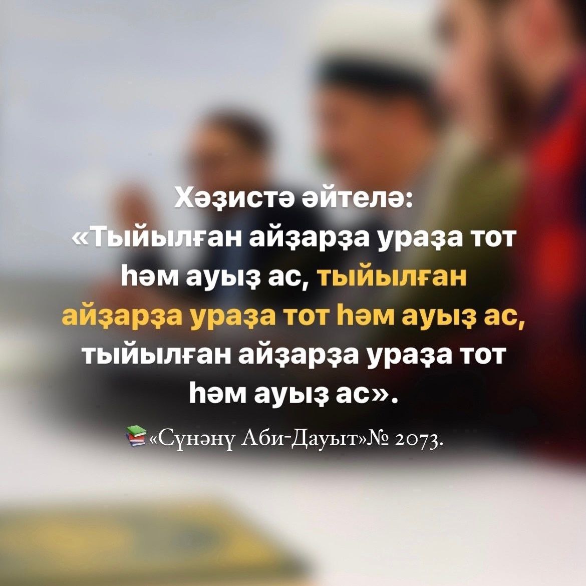 Ураҙа - башҡаһына ҡарағанда йәшерен, сөнки был турала бер Аллаһ һәм ураҙа тотоусы ғына белә. Хәҙистә әйтелә: «Тыйылған айҙарҙа ураҙа тот һәм ауыҙ ас, тыйылған айҙарҙа ураҙа тот һәм ауыҙ ас, тыйылған айҙарҙа ураҙа тот һәм ауыҙ ас». 📚 («Сүнәнү Аби-Дауыт»№ 2073). 🤲Тура юл төркөмөнән